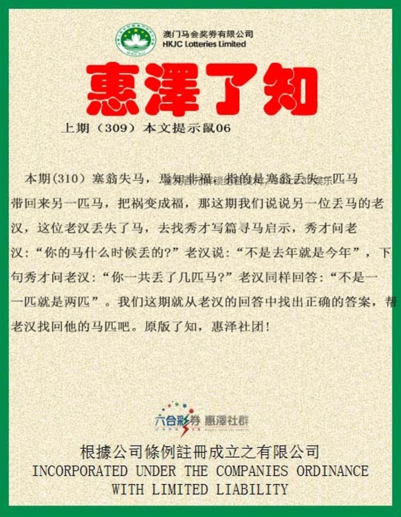 311期:黄大仙心水/简单好下注/台湾玄机诗/港台澳七肖/必中人物